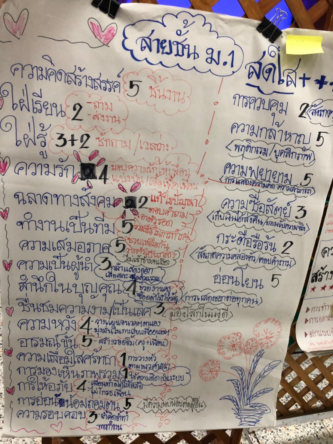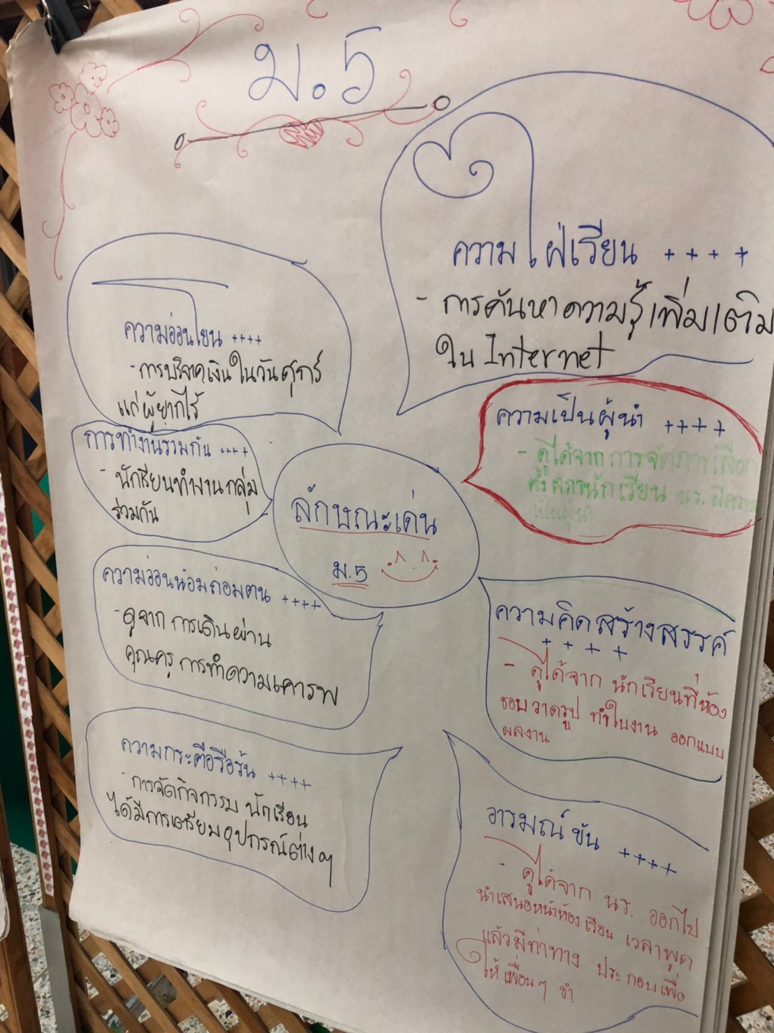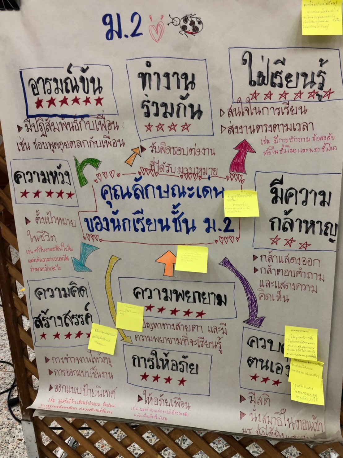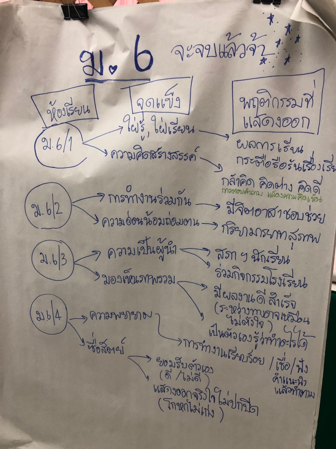 การเดินทางในครั้งนี้ เริ่มต้นด้วยการชวนให้ครูทุกท่านแบ่งปันเรื่องราว ความรู้สึกในขณะที่ได้ไปสังเกต สัมภาษณ์ เก็บข้อมูล เกี่ยวกับ “จุดแข็ง (Character Strengths)”[1] ของนักเรียนแต่ละคนในห้องเรียน ว่าเป็นอย่างไรบ้าง ในช่วงเดือนกว่าๆที่ผ่านมา ซึ่งถือเป็นภารกิจร่วมกันของคุณครูทุกระดับชั้น และทุกห้องเรียน โดยวิธีการและเกณฑ์ในการมองหาจุดแข็งของนักเรียน เราให้คุณครูเป็นผู้ออกแบบเกณฑ์เหล่านั้นเอง