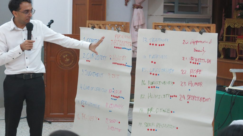 โดยเนื้อหาการพัฒนาศักยภาพครู ระดับชั้นมัธยมศึกษา ในช่วงสองวันที่ผ่านมา ได้มีการเรียนรู้ร่วมกันเกี่ยวกับ ความรู้พื้นฐานจิตวิทยาเชิงบวก (Foundation of Positive Psychology) ตั้งแต่หลักการที่มา จนไปถึงความรู้ทางทฤษฎี ตั้งแต่