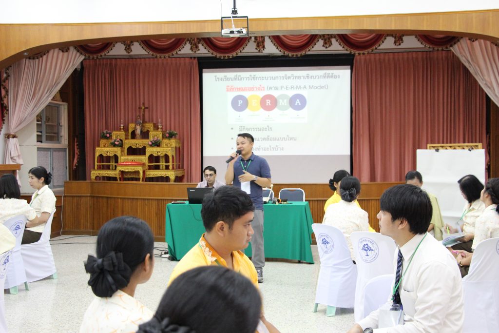ซึ่งคณะผู้บริหารโรงเรียน นำโดย มาเซอร์ ซีริว สุนีรัตน์ เปลี่ยนบำรุง พร้อมคณะครู ได้ร่วมตั้งพันธะสัญญาร่วมกัน (Commitment) ในการนำโรงเรียนสู่การเป็นโรงเรียนเชิงบวก โดยการออกแบบกระบวนการสร้างการเปลี่ยนแปลง ผ่านการทำงาน ตั้งแต่การพัฒนาศักยภาพครู ผู้บริหาร ภายใต้กระบวนการทัศน์จิตวิทยาเชิงบวก ซึ่งเริ่มที่ครูระดับชั้นมัธยมศึกษา ที่เป็นครูที่ปรึกษา ครูคู่ชั้น จำนวน 40 คน โดยแบ่งการพัฒนาศักยภาพออกเป็น 3 module การเรียนรู้ – การออกแบบให้มีชั่วโมงที่เรียนรู้สิ่งรอบตัวในชีวิตผ่านเครื่องมือทางจิตวิทยาเชิงบวก ในระยะที่สองหลังการอบรม –การออกแบบการประเมินและติดตามการพัฒนานักเรียนตามแนวทางจิตวิทยาเชิงบวกในโรงเรียน เป็นต้น